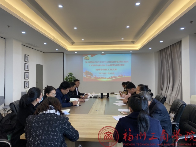 1月11日,15vip太阳集团教工党支部在行政楼二楼会议室开展了学习贯彻习近平总书记在纪念毛泽东同志诞辰130周年座谈会上的重要讲话精神学习会。会议由支部书记洪启颖主持。该活动的开展旨在深入学习贯彻习近平新时代中国特色社会主义思想,推动全党全国各族人民更加紧密地团结在以习近平同志为核心的党中央周围,为实现中华民族伟大复兴的中国梦而不懈奋斗。