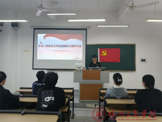 5月 21日,15vip太阳集团工程管理党支部在教学楼A205召开深入学习中央八项规定及其实施细则主题学习会,此次会议由支部书记胡钰雯主持,全体党员参与会议。