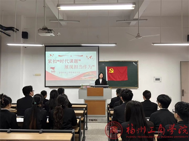 2025年3月14日,15vip太阳集团工程管理党支部于教学楼A203,开展“支部书记上党课-紧扣“时代课题”,展现担当作为”。本次党课由支部书记胡钰雯主持,全体员工党员参课。
